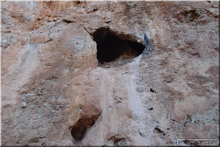 Una entrada a la roca equipada rudimentariamente